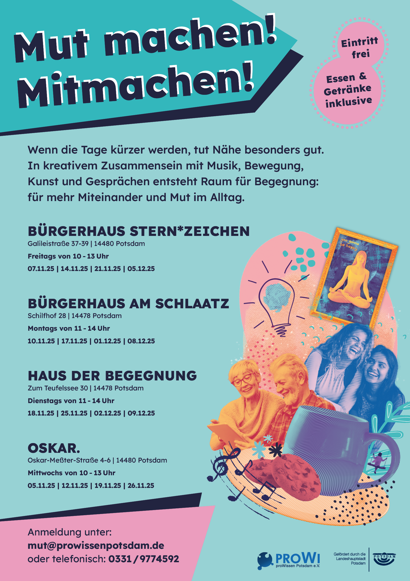 In Drewitz hat sich oskar. DAS BEGEGNUNGSZENTRUM IN DER GARTENSTADT seit 2013 als stadtteilorientiertes, soziales und kulturelles Zentrum etabliert. Wir verstehen uns als soziokulturelles Drehkreuz stadtteilbezogener Belange. Egal, ob Sie als Neuzugezogene Informationen oder Orientierung brauchen, einen Ort für die eigene Feierlichkeit suchen oder das bunte Veranstaltungsangebot des oskar. nutzen möchten, finden Sie bei uns ein wertschätzendes, respektvolles und breit aufgestelltes Team, welches Ihnen gern zur Verfügung steht.
