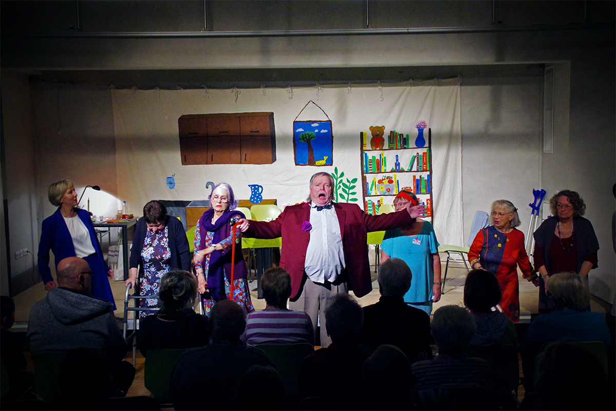 Wir gehen auch regelmäßig in Senioreneinrichtungen, um Ausschnitte und Lieder, manchmal auch unser ganzes Stück darzubieten und Freude zu bereiten.